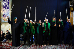 آیین سنتی مشق شمشیر در شامگاه هشتم محرم در حسینیه نجفیهای مقیم مشهد برگزار شد