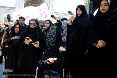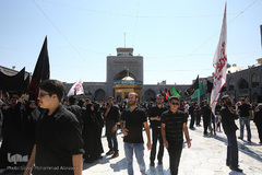 همزمان با عاشورای حسینی هیاتهای مختلف عزاداری از سراسر ایران، زائران و مجاوران حرم امام رضا(ع) در حرم مطهر رضوی به عزاداری پرداختند.
