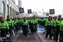 آیین بدرقه خادمان و زائران اربعین حسینی، عصر امروز پنجشنبه 11 مهر در صحن انقلاب حرم مطهر رضوی برگزار شد.
