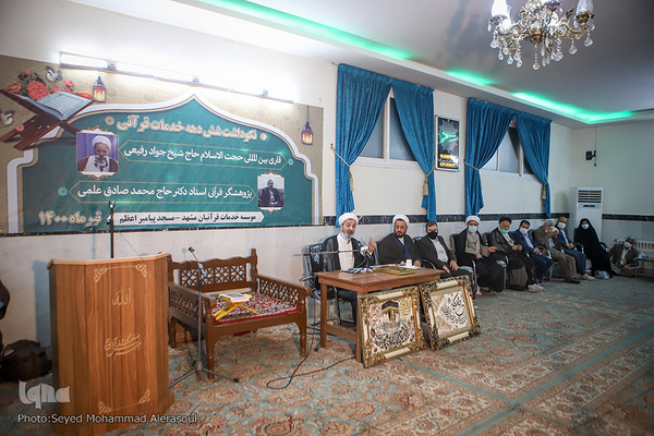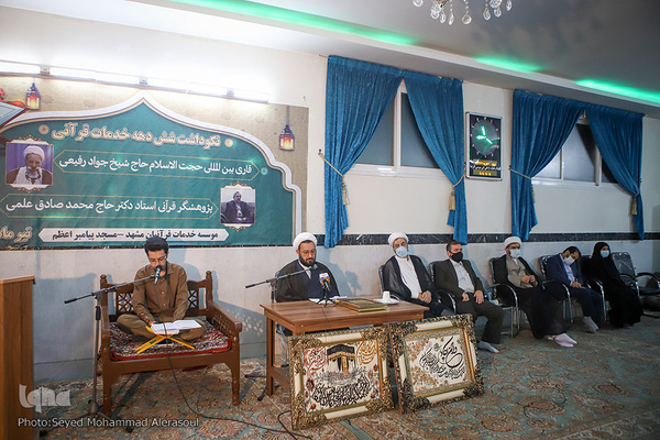 محفل انس با قرآن و آیین بزرگداشت 6 دهه خدمات قرآنی، قاری بینالمللی حجتالاسلام والمسلمین جواد رفیعی و پژوهشگر قرآنی، محمدصادق علمی، شامگاه گذشته 24 تیرماه، بههمت مؤسسه خدمات قرآنیان مشهد، در مسجد پیامبر اعظم(ص) برگزار شد.