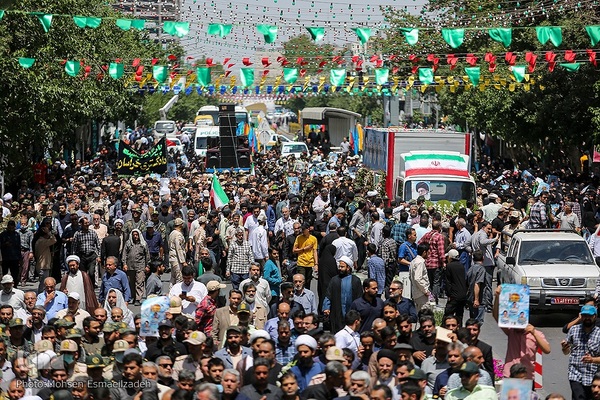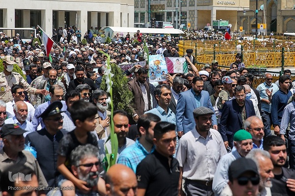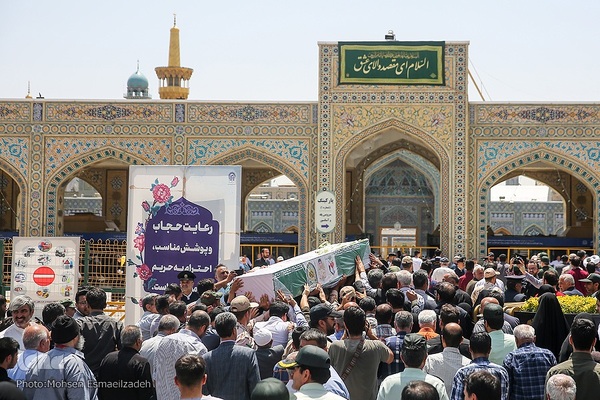مراسم تشییع پیکر سه شهید مرزبانی حادثه تروریستی سراوان، امروز، دوم خردادماه، با حضور گسترده مردم از عرصه میدان شهدای مشهد به سمت حرم مطهر رضوی برگزار شد.