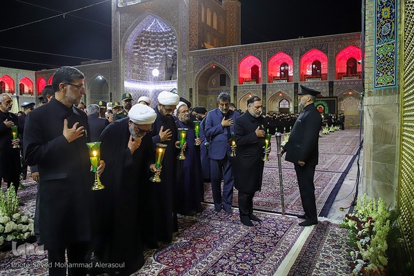 مراسم شام غریبان امام حسین(ع)، با حضور عزاداران حسینی و خدام حرم امام رضا(ع)، شامگاه ۶ مردادماه، در صحن انقلاب اسلامی حرم مطهر رضوی و خیابانهای منتهی به حرم برگزار شد.