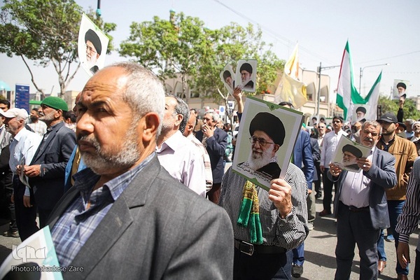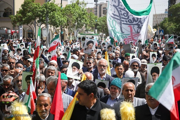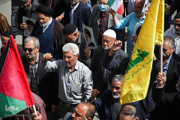 نمازگزاران مشهدی امروز ۳۱ فروردین در حمایت از عملیات سپاه پاسداران در برابر رژیم صهیونیستی راهپیمایی کردند.