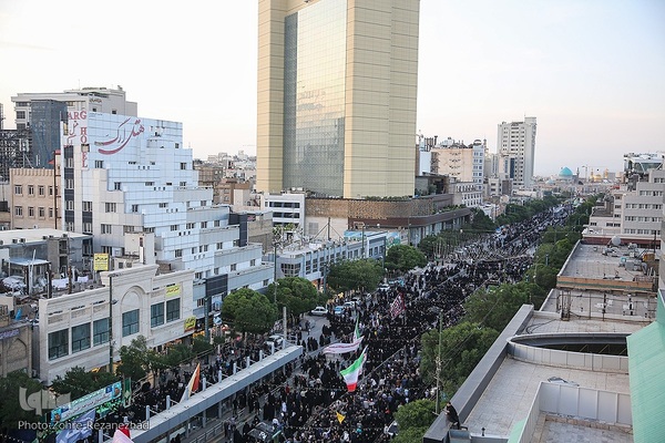 همزمان با ولادت امام رضا(ع)، مردم مشهد عصر امروز، ۳۱ اردیبهشتماه، با تجمع در میدان بسیج این شهر در فراق این خادم الرضا(ع)، رئیس جمهور مردمی و هیئت همراه ایشان، به عزاداری پرداختند.