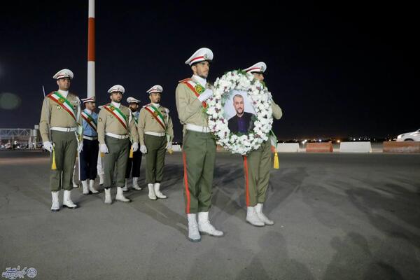 پیکر امیرعبداللهیان وزیر امور خارجه، شامگاه ۲ خردادماه، با استقبال مدیران استانی و سر کنسولها و روسای نمایندگیهای خارجی مستقر در مشهد جهت طواف در حرم مطهر رضوی وارد فرودگاه شهید هاشمینژاد شد.