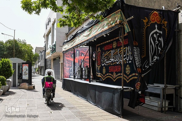 در آستانه ماه محرم، عزاداران امام حسین(ع) معابر و خیابانهای شهر مشهد را با پرچمها و پارچههای مشکی سیاهپوش کردند.